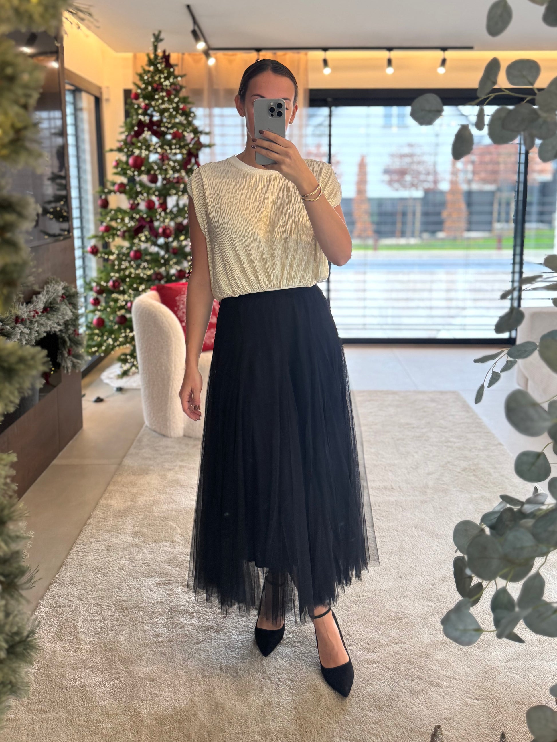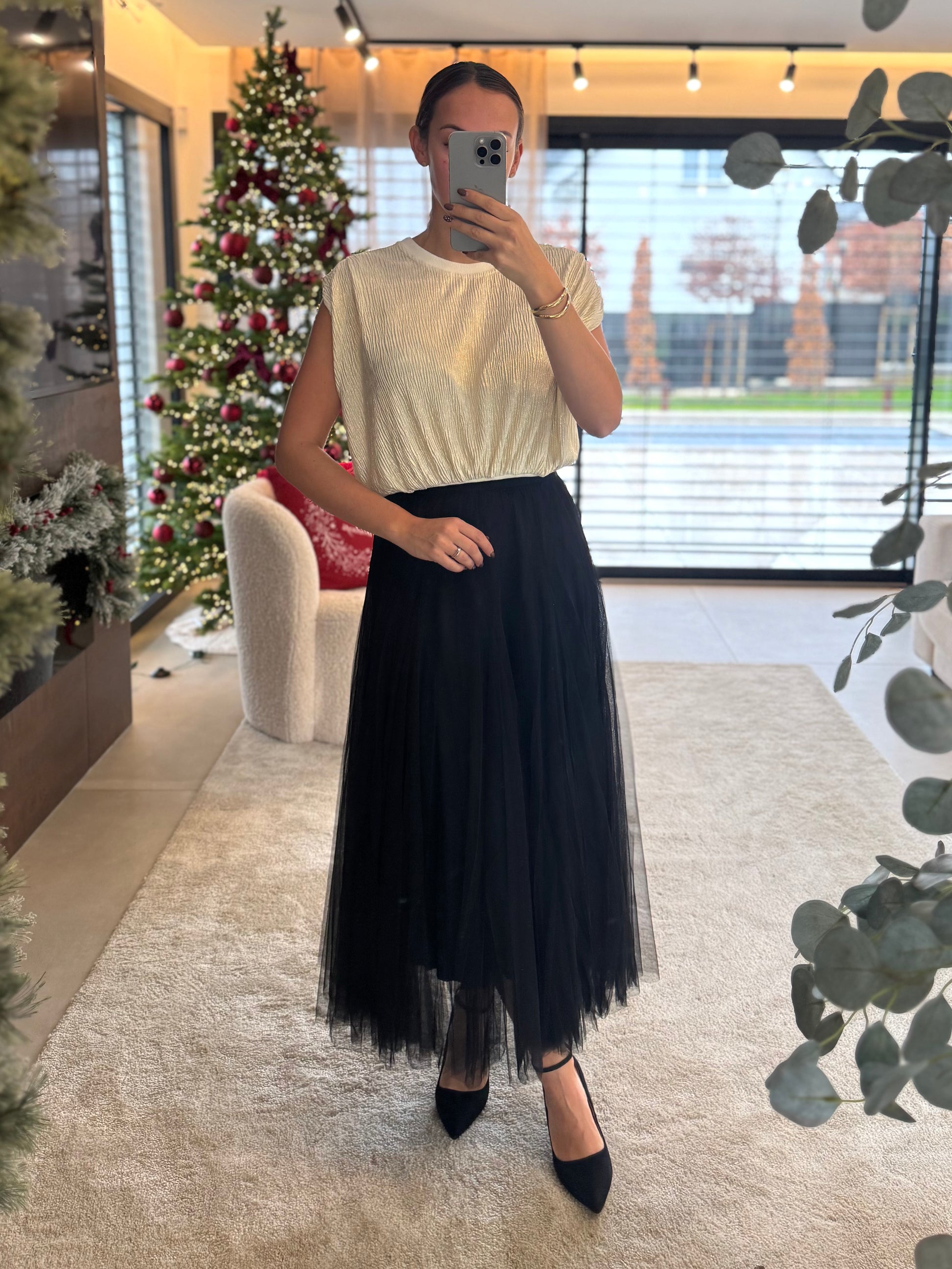 - Jupe longue noire en tulle