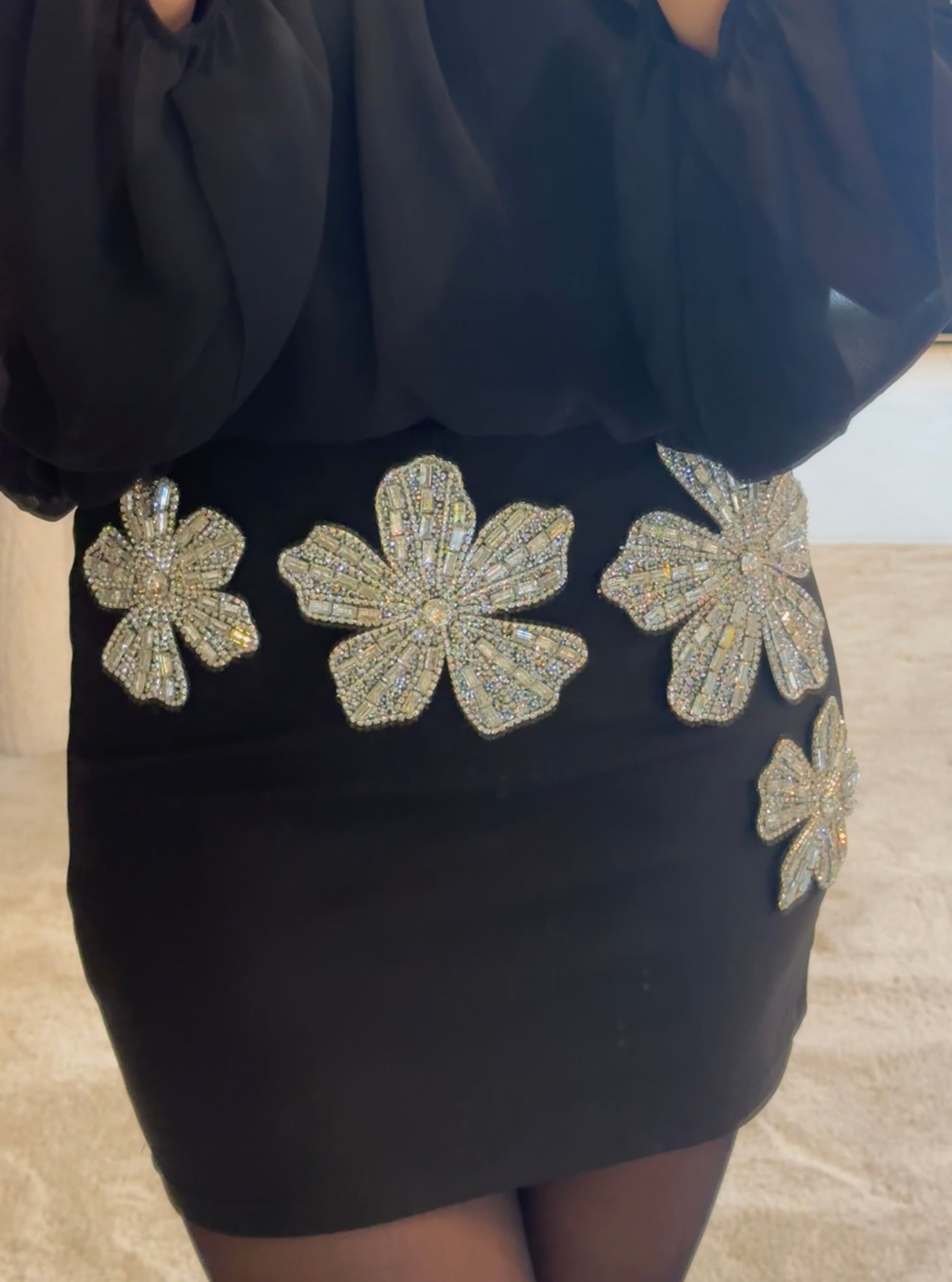 - Jupe courte noire avec fleurs